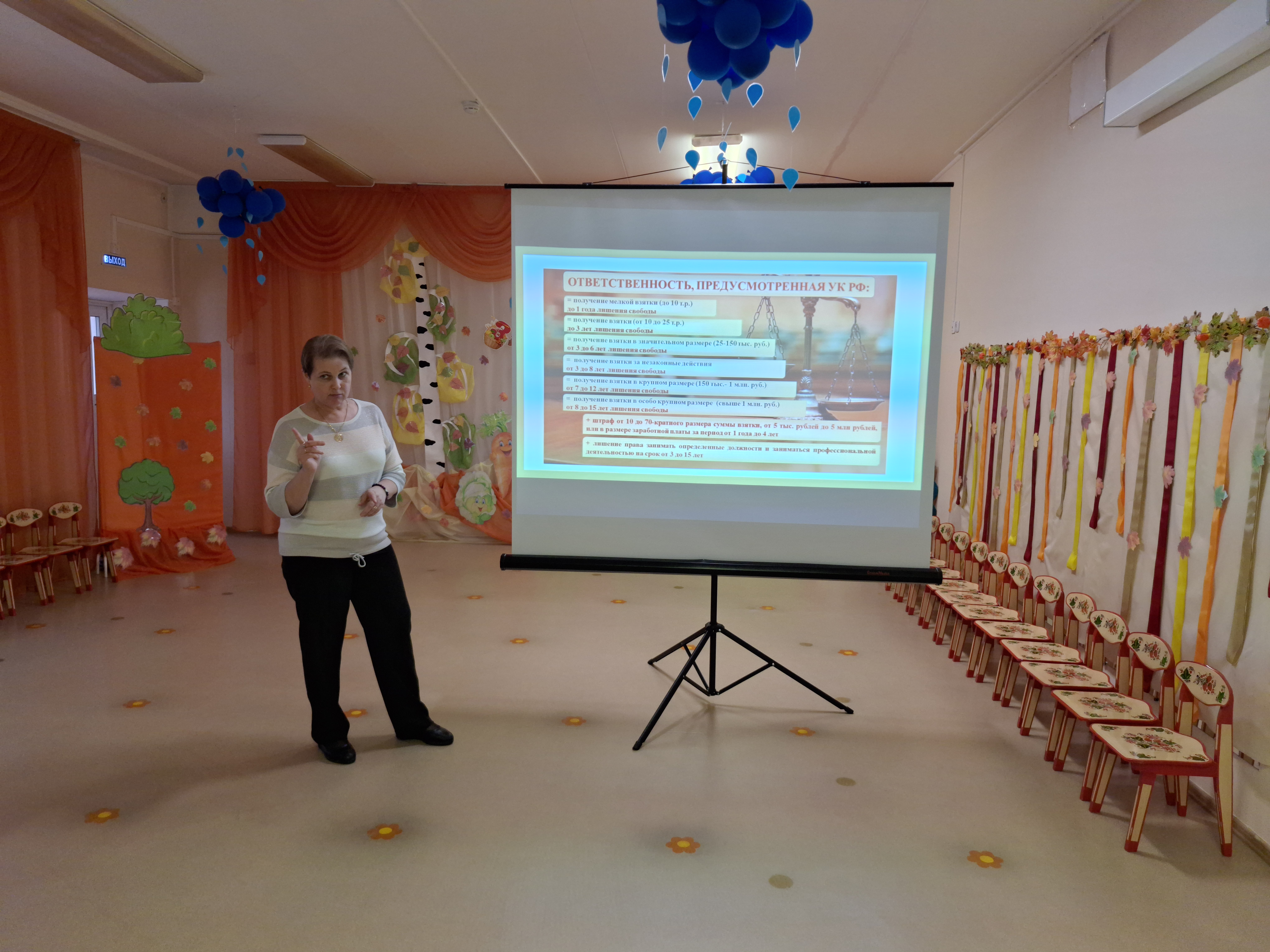 В преддверии Международного дня борьбы с коррупцией (9 декабря) организованы и проведены мероприятия по антикоррупционному просвещению и популяризации в обществе антикоррупционных стандартов среди работников и родителей (законных представителей) МБДОУ - детского сада № 189. Проведен для сотрудников семинар "Коррупция (понятие, ответственность, противодействие коррупции)", разработали и вручили буклеты на антикоррупционную тему посетителям детского сада, разместили информацию на стенде "Антикоррупция".