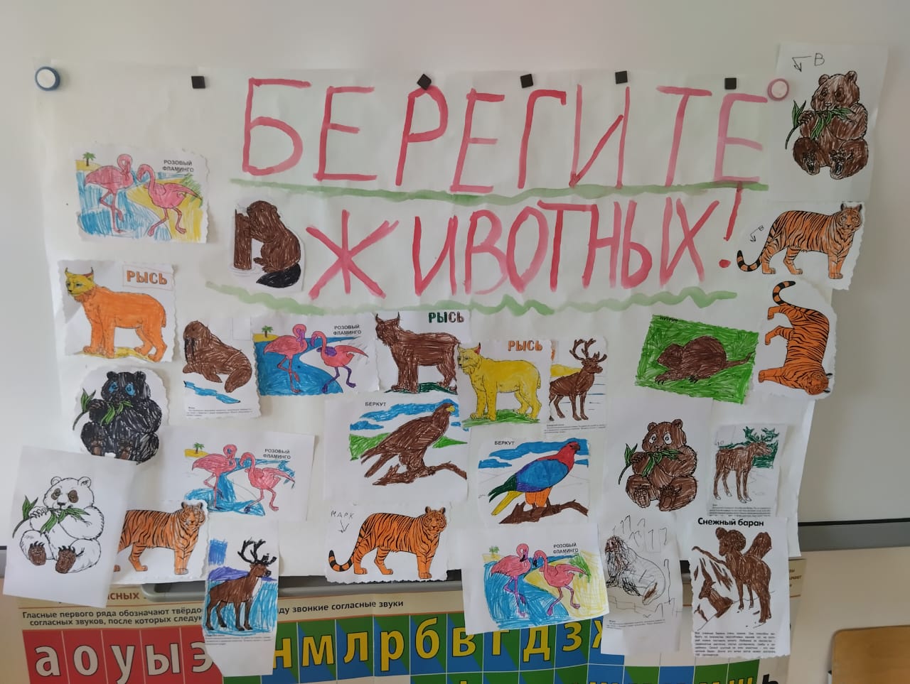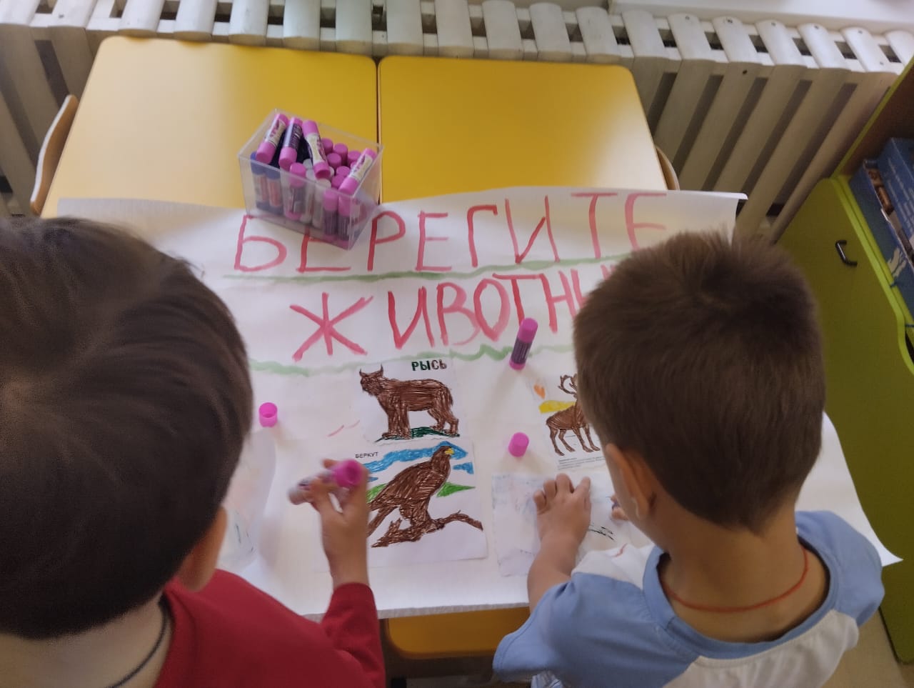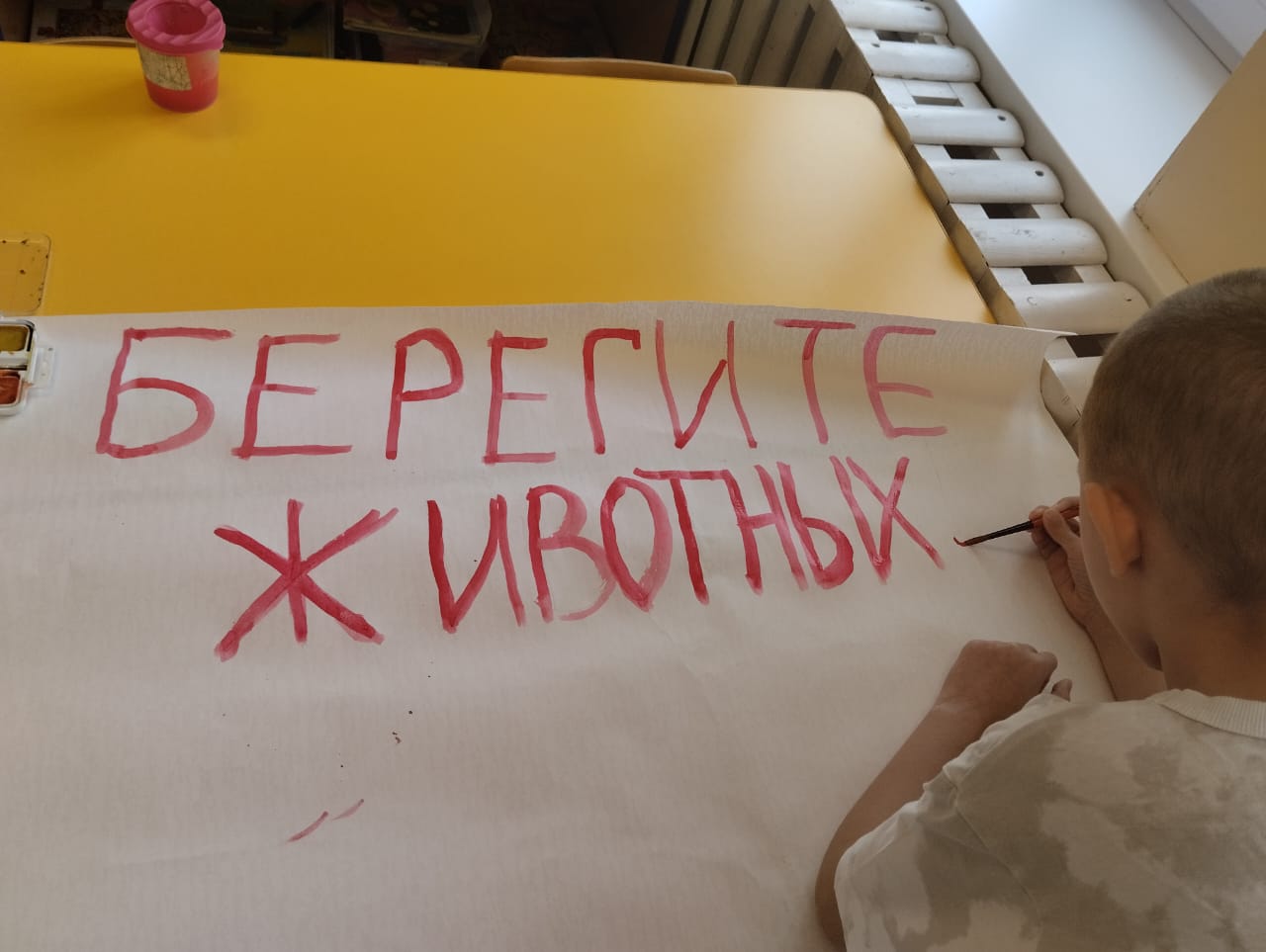 Дети подготовительной к школе группы "Гномики" под руководством Анастасии Сергеевны, воспитателя, приняли на себя роль защитников природы и нарисовали совместный плакат в защиту животных!!!