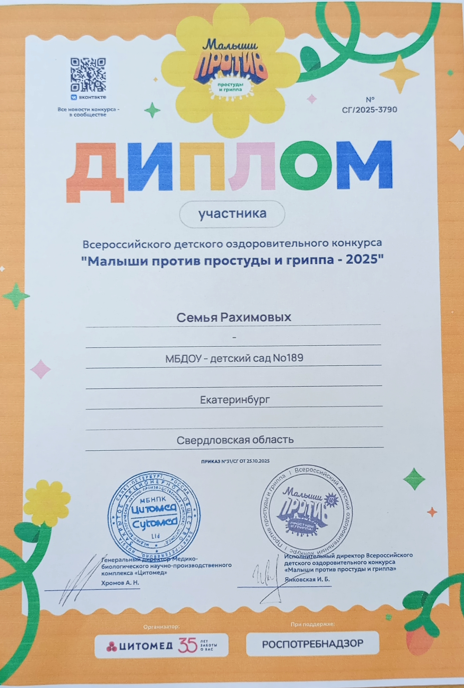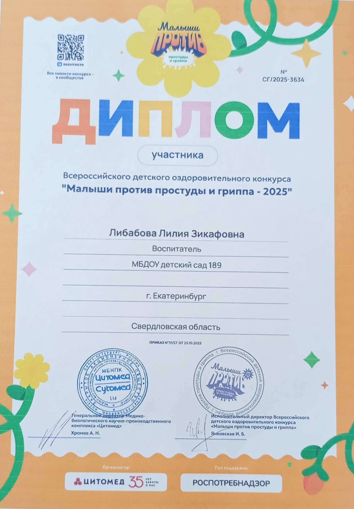 В данном конкурсе под руководством Лилии Зикафовны Либабовой, воспитателя, дети раннегог возраста в форме рисунка изобразили вирус гриппа, который был побежден отважным Цыпленком Цитовирчиком. Ребята с педагогом поговорили о том, как уберечь себя от заболевания гриппом: нужно соблюдать режим дня, побольше гулять на свежем воздухе и кушать много фруктов и овощей. Посмотрите на замечательные рисунки детей! За участие в конкурсе дети получили Дипломы!