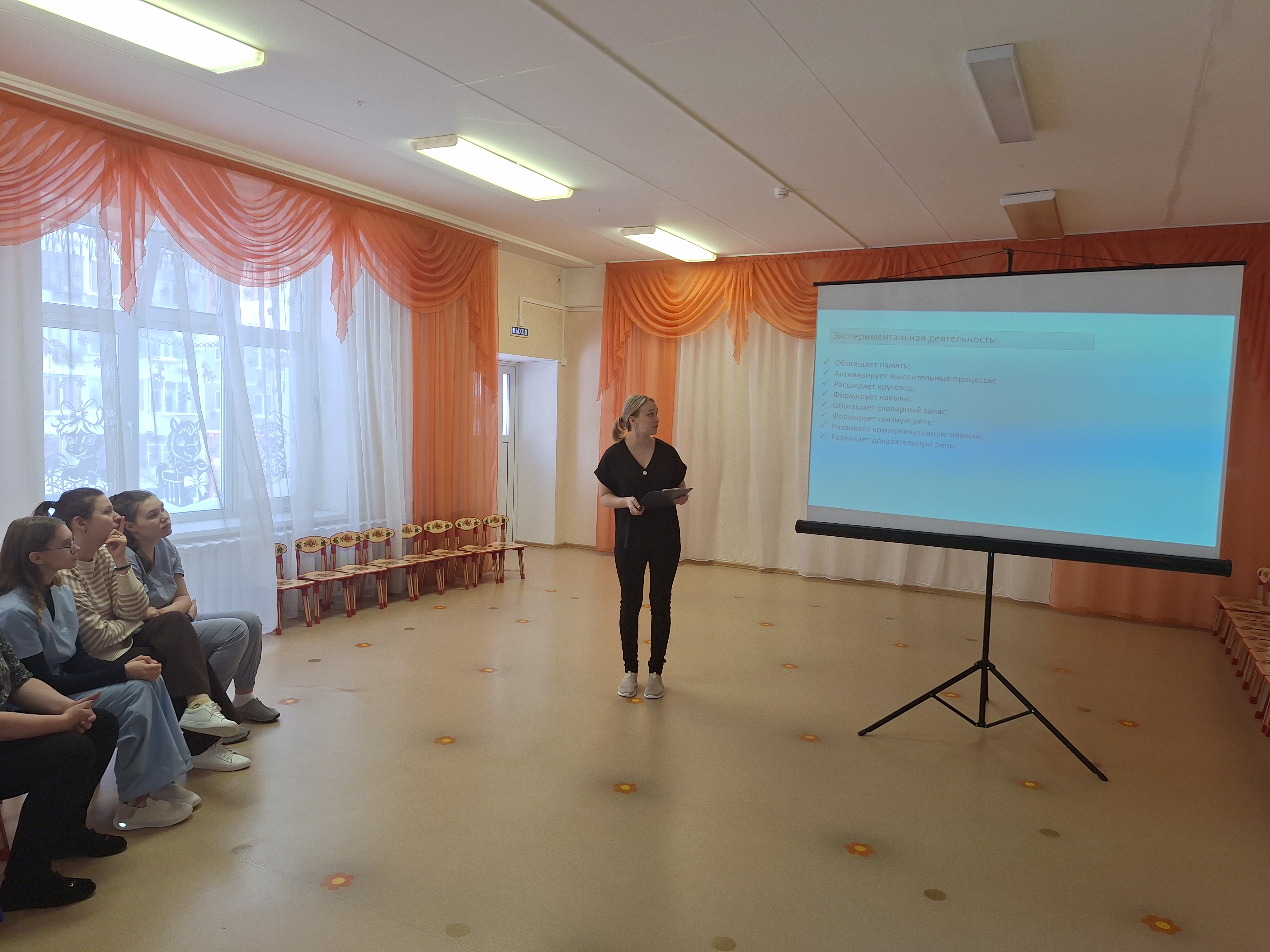Анастасия Сергеевна отметила, чтобы дети активно участвовали в экспериментальной деятельности, проявляли интерес к наблюдениям и анализу результатов, необходимо организовать предметно-развивающую среду, где ребёнок мог самостоятельно проводить опыты, наблюдать за объектами, подтверждать или опровергать гипотезу, формулировать простейшие выводы.