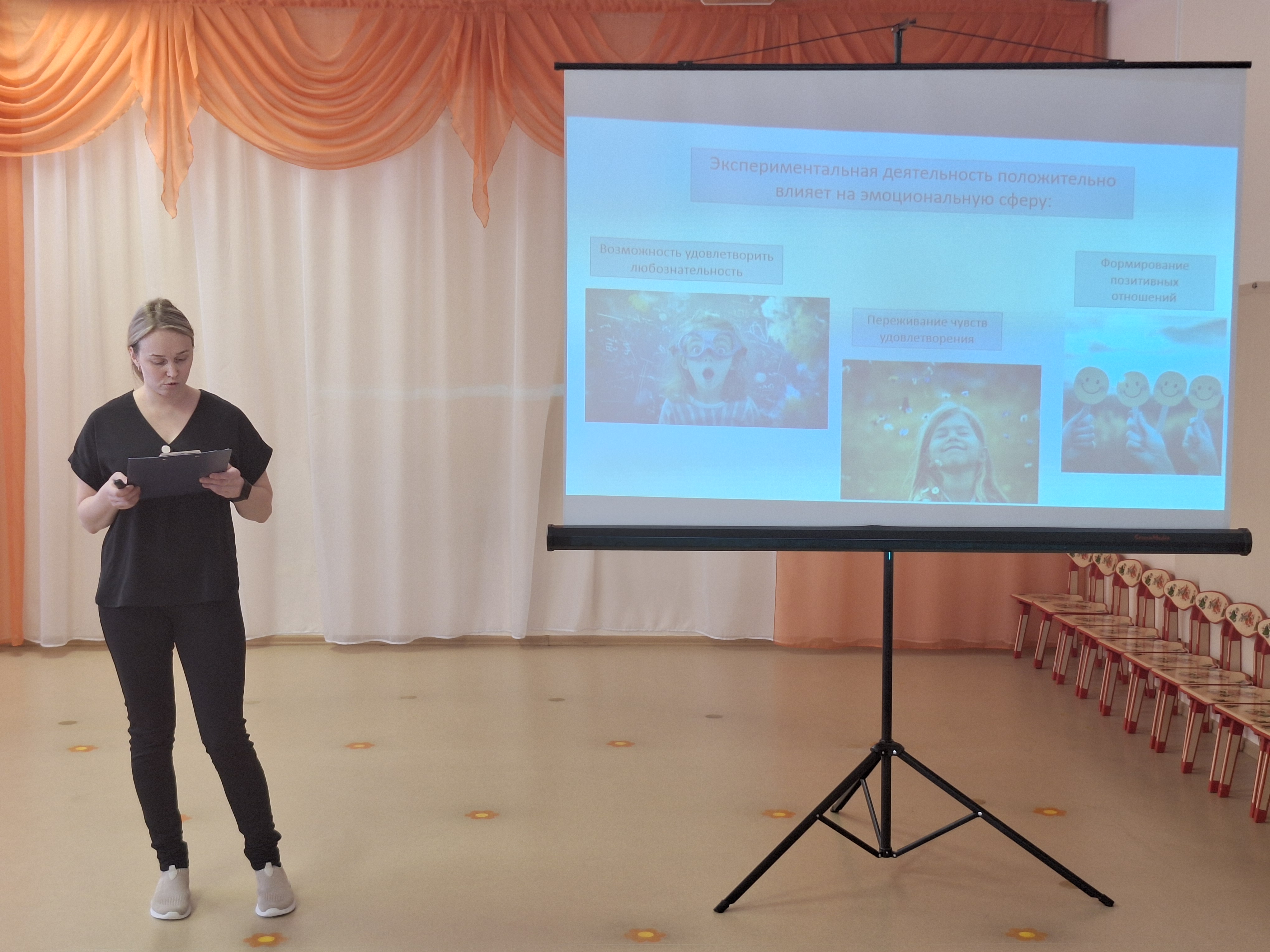 Анастасия Сергеевна Мухаматьянова, воспитатель, рассказала педагогам детского сада о своем опыте работе с детьми в экспериментальной деятельности.