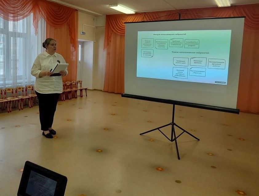 Анна Юрьевна Поликарпова, учитель-логопед, познакомила педагогов детского сада, как можно в своей работе использовать искусственный интеллект и нейросети.