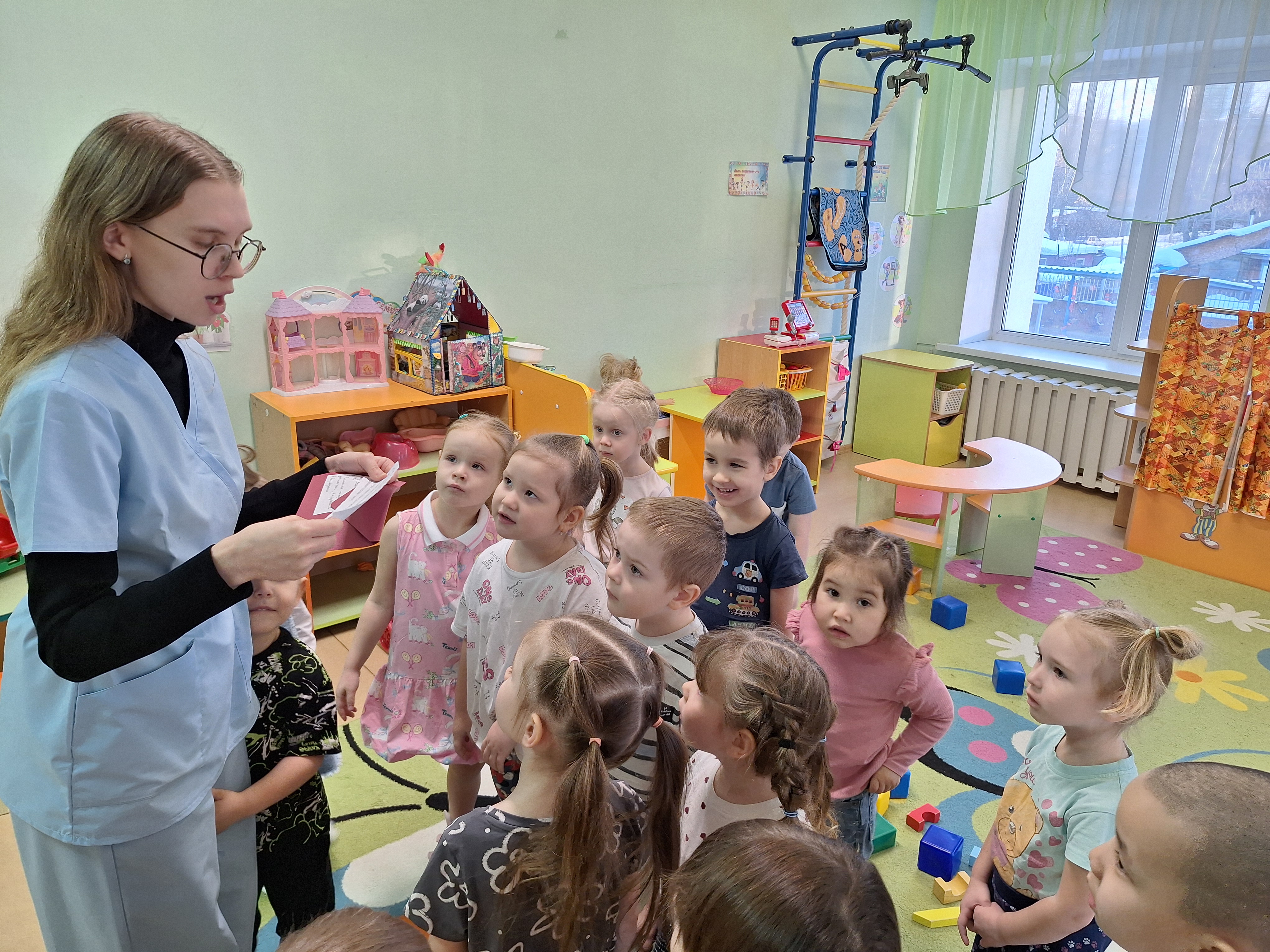 Занятие было построено в форме игры, что способствовало повышению интереса детей и лучшему усвоению материала. К детям в гости пришёл Волшебник, который оставил для них конверт с играми-заданиями: игра «Собери кубики» — сортировка кубиков по размеру; игра «Найди друга» — анализ фигуры в руках ребёнка и поиск фигуры-партнёра; раскрашивание картинок — развитие мелкой моторики и координации движений.