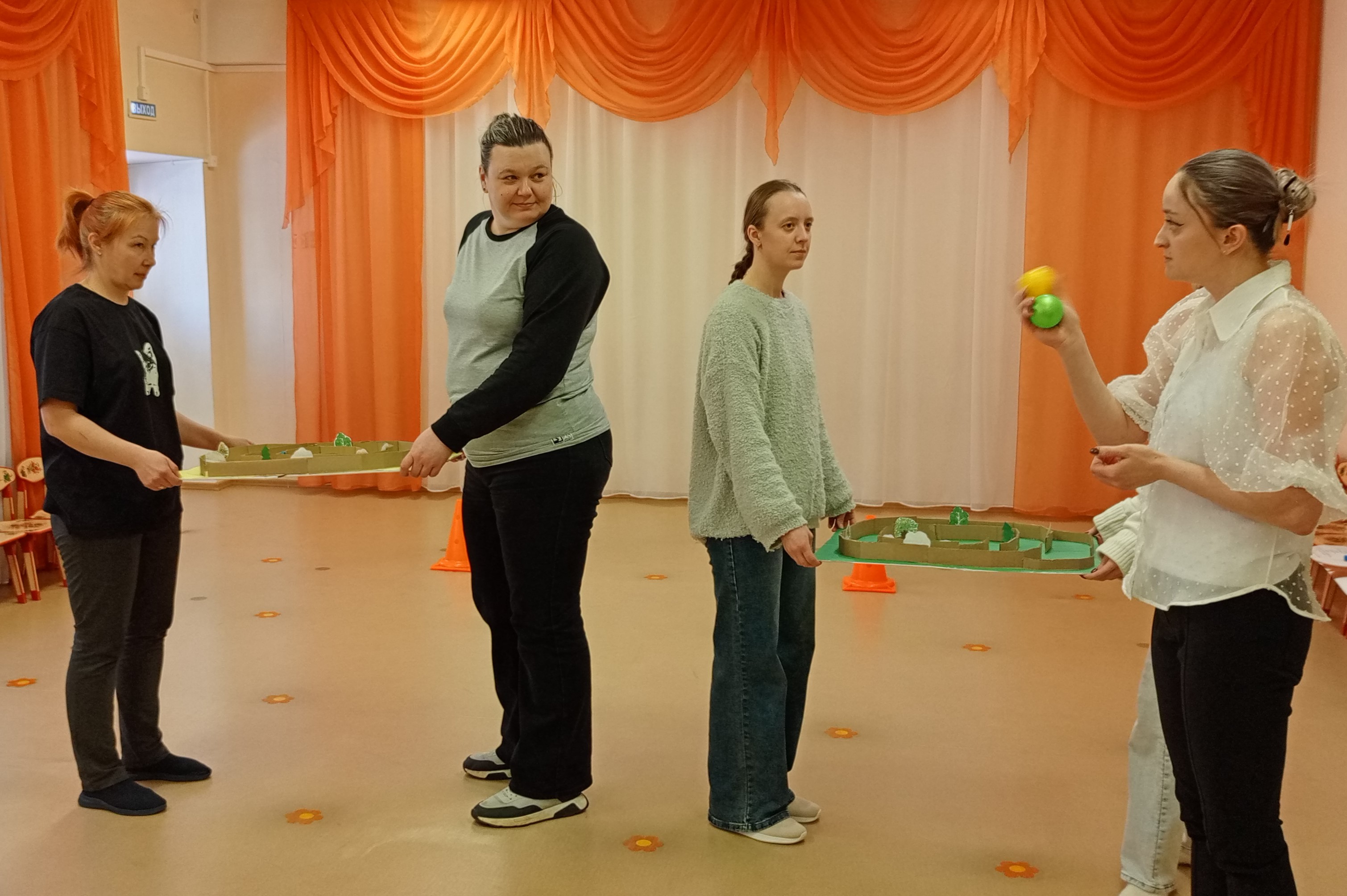 Практическая часть: были предложены игры на использование разных технологий, таких как «детский туризм» и «игровой стретчинг». Также использовались игры народов Урала и игры с помощью аудио-картотеки.