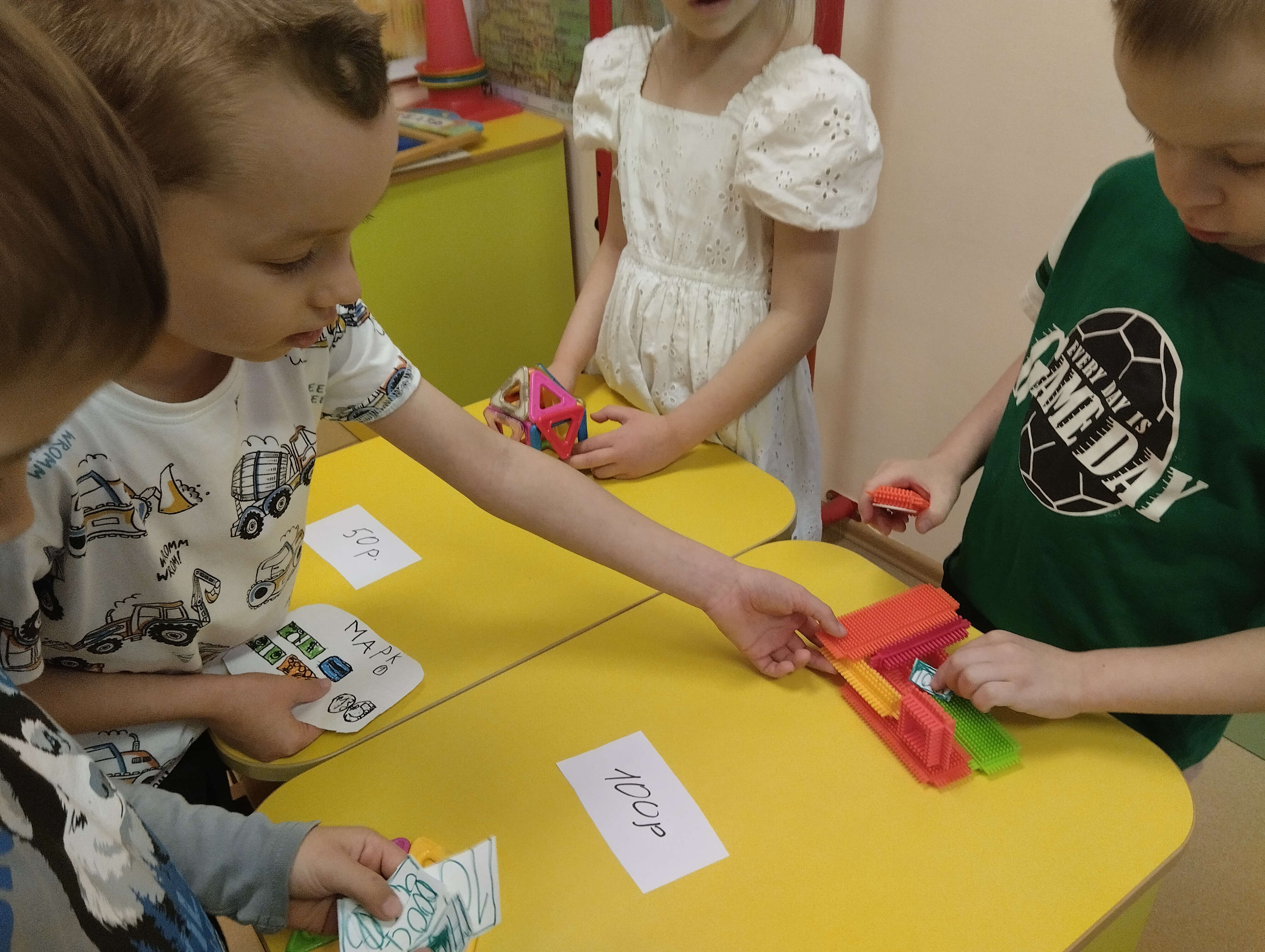 Анастасия Сергеевна, воспитатель, в начале проекта познакомила детей с понятиями "заработная плата", "труд", "денежные знаки", "мастерство", "доход". Ребята рисовали свои денежные знаки, затем создавали продукт из разного вида конструктора, а затем учились покупать и продавать товар в различных сюжетно-ролевых играх. Итогом проекта можно назвать мысли детей вслух "Нужно бережно относиться к зарплате, экономить, тратить только на полезные вещи, откладывать на будущее и т.д."